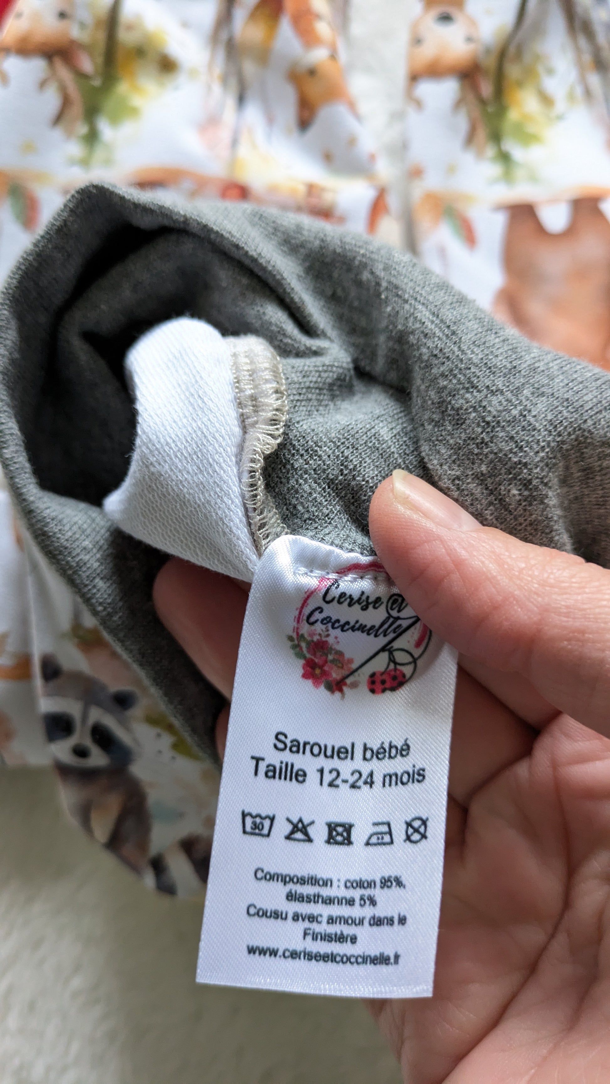 Instructions de lavage : en machine à 30, 40 ou 60°. Sèche linge à éviter.